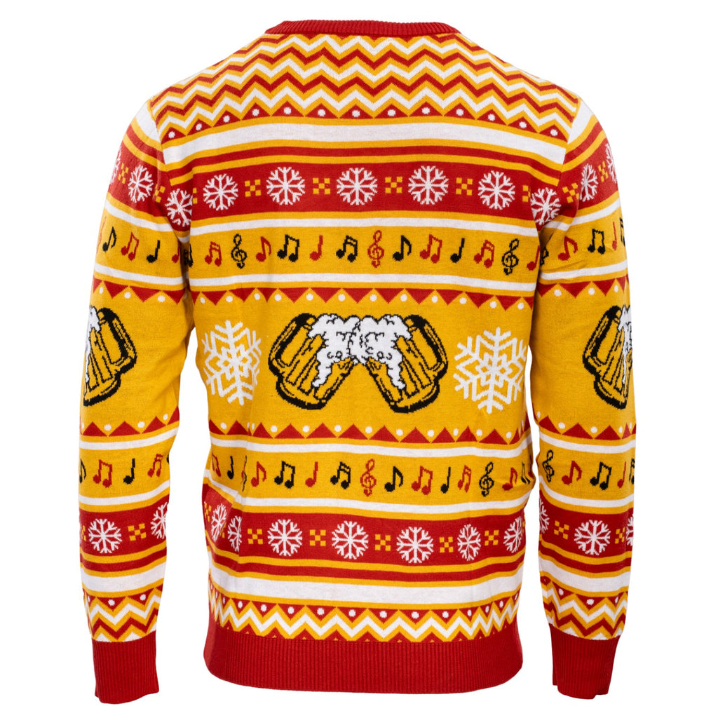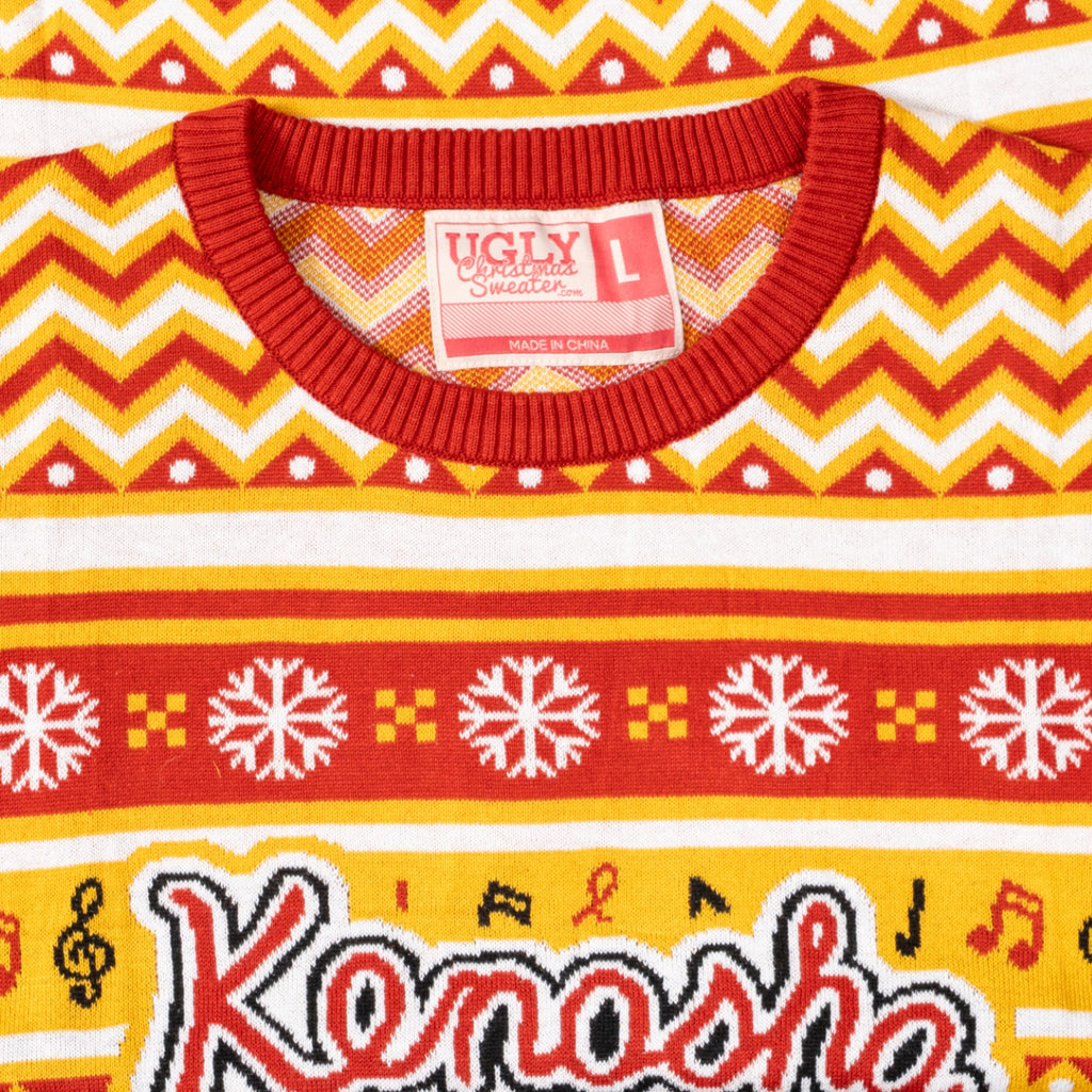 The Kenosha Kickers Band Logo Home Ugly Christmas Sweater is a cozy and festive addition to any man's wardrobe. Made from acrylic material in a tight-knit style, this red sweater features a graphic print of the iconic Home Alone character. The sweatshirt has a crew neck and long sleeves, making it perfect for the holiday season. The sweater also boasts a Kennosha Kickers logo accent, adding a unique and fun touch to the design. Whether you're a fan of the Home Alone movie or just love a good ugly Christmas sweater, this Mad Engine creation is sure to stand out.