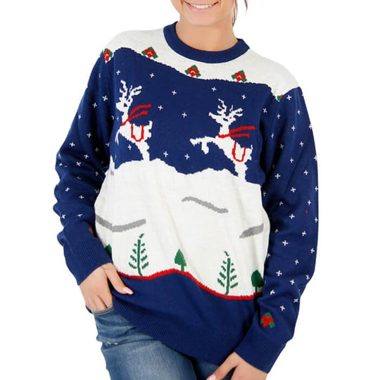 Sizing This is a no-brainer. Your jumper shouldn't fit you like a neoprene rash guard, nor should it drape over you like a maternity dress. Here are UCS we have every size (medium, large, XML ,etc) for both men and women, so rest assured we've got you covered on your novelty Christmas Jumper needs. Also, decide if you want a double knitted xmas jumper.