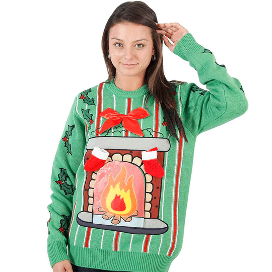 There was a time not so long ago when people going to a party looked for ways to light that party up. Thanks to the new line of light up Ugly Christmas Sweaters here at UglyChristmasSweater.com you can now do that with both style and ease. Here is where you will find a complete line of these lit up fashion faux pas for both women and men. When you get one of these lit up, totally tacky sweaters you will have the opportunity to be the bright spot at any Christmas event. These sweaters are all machine washable and they are also incredibly lightweight. These aren't your parents’ lit up sweaters either. You won’t need to carry multiple large batteries around with you to keep the lights on. One of the big parts of the holiday season is the lights. You see them everywhere – on Christmas trees, buildings and even the flora outside buildings. Why not be a walking, talking part of the holiday lights? You can do that with ease when you wear one of these lit up Christmas sweaters. Choose from sweaters with lights in places where they would seem appropriate – think fireplaces, candle flames, Christmas tree lights, etc. and then there are sweaters with lights in seemingly odd places that you will just have to see to believe. That said, take a few minutes and scroll through our selection of lit up Ugly Christmas Sweaters. If you happen to be wondering why you would choose a lighted sweater as opposed to unlit ones, well that might be a personal question. The fact is though that when you decide to go with a light up sweater, we have the best ones around. You can get sweaters with solid color lights or multi-color lights. In fact, we have something for everyone here. Which one will you choose to light up your next holiday event with?