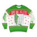 Now every anime fan can show their Christmas spirit when they wear this awesome Attack on Titan ugly Christmas sweater. Regardless of whether you've got a holiday party to attend, an after-hours work get together, or you just want a warm and comfy sweater to wear when you're hanging out around the house watching your favorite anime series, this Attack on Titan 4 Kanji and Swords ugly holiday sweater will not disappoint anyone.