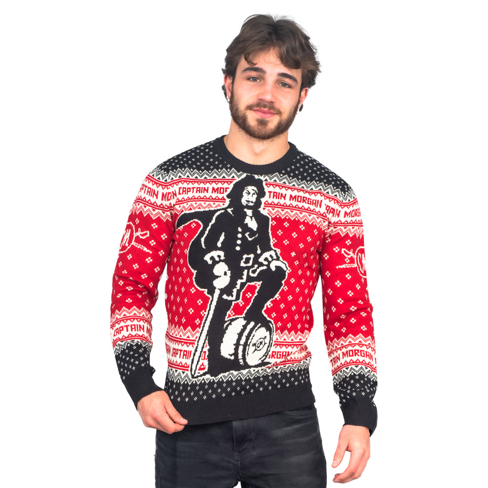 Get your drink on this holiday season, get yourself into the spirit of celebrating Christmas by wearing this hilarious Captain Morgan the Standing Captain Ugly Christmas Sweater. Featuring the iconic Captain Morgan mascot across the front of this ugly holiday sweater, now you can not only feel a little warmth because of the spirits you're enjoying this holiday season, you can also wear something that will literally allow you to feel warm, comfortable, and stylish. (Not to mention tipsy as one of Santa's elves when they're out with their fellow elves at the pub.) Everyone knows Captain Morgan and if you’re looking to show everyone how much of the life of the party you are, then wearing this ugly Christmas sweater will not disappoint.