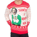 Show off your sense of humor this year while showing off your love for Will Ferrell and his classic movie Elf during the holiday season, when you wear this officially licensed Elf Buddy Santa, I Know Him ugly Christmas sweater out with your friends, to your next family gathering, or after hours, work Christmas party. There's nothing funnier than Will Ferrell, and if you're a fan of the movie Elf, then you can't go wrong when you buy and wear this hilarious Will Ferrell Elf movie ugly Christmas sweater -- it'll make you feel as tipsy as one of Santa's elves.