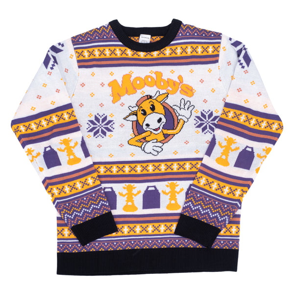 Everyone should hit up the drive-thru of Mooby’s this holiday season - get a burger that'll make you feel as tipsy as one of Santa's elves! Mooby’s is everyone’s favorite, fictional fast-food restaurant from the Kevin Smith universe! And if you’re as big of a fan of Kevin Smith and Jay & Silent Bob as we are here, then you’ve got an instant appreciation of this loveable and fun Jay & Silent Bob Mooby’s ugly Christmas sweater. Wearing a Mooby’s ugly Christmas sweater this holiday season is a great way to strike up conversations with friends or family “not in the know” at your next holiday party.