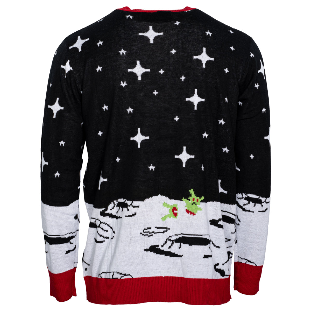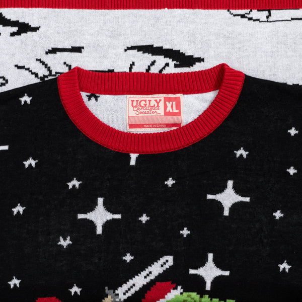 What's more crazy that Santa on the moon, riding a T-Rex dinosaur with a bag of presents over his shoulder as he points to the stars with his sword? "Ugly" is a relative term when it comes to Christmas sweaters, and if you like clothes that best represent your state-of-mind during the holiday season, then you've come to the right place. Perhaps the craziest design in our 2023 catalog, this nutzoid ugly holiday sweater will have people questioning your sanity this holiday season.