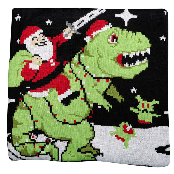 - Unique and humorous design featuring Santa Claus riding a T-Rex, perfect for those looking to stand out.