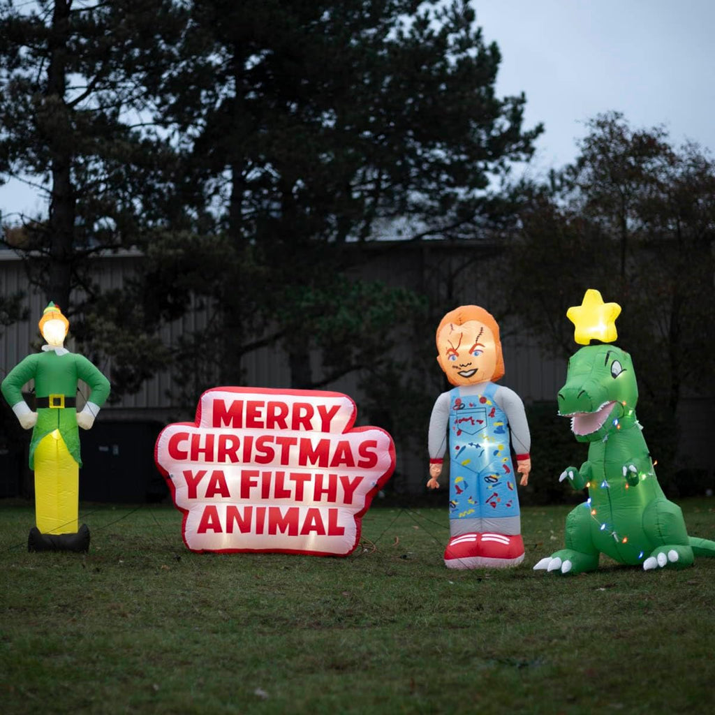 Setting up your Tree Rex is as simple as plugging it in. The self-inflating design means you won’t have to spend hours preparing; instead, you’ll have more time to enjoy the season. As night falls, the built-in lights illuminate Tree Rex, turning it into a radiant centerpiece of your holiday display, perfect for capturing the imagination of neighbors and guests alike.