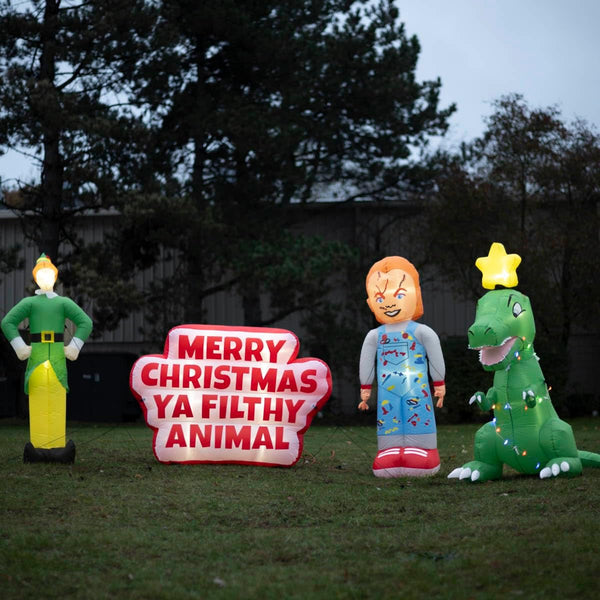 Step into a festive world where prehistoric charm meets holiday cheer with our Tree Rex Indoor/Outdoor Inflatable Decoration. Standing at an impressive 6 feet tall, this dinosaur-themed inflatable is a delightful twist on traditional holiday decor, blending the wonder of dinosaurs with the magic of Christmas.