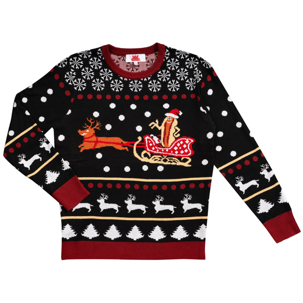 Get ready to make your holiday season epic with the ultimate Wienerschnitzel-themed holiday sweater, only available at UglyChristmasSweater.com! Show your love for the World’s Largest Hot Dog Chain in the most festive and hilarious way. Our one-of-a-kind design is a must-have for Wienerschnitzel fans, making it the perfect addition to your holiday wardrobe. Celebrate the season with a dash of hot dog charm – order yours now and stand out at every holiday party!