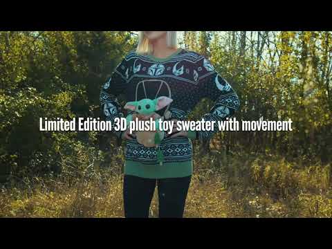 May the force with you! Fans of the Star Wars franchise, Yoda, Baby Yoda, will love this really fun Baby Yoda 3-D Flappy Ugly Christmas Sweater. Featuring everyone's favorite, Baby Yoda, now you can show everyone just how much you love Baby Yoda by having him literally pop or flap right off your chest during this upcoming Christmas sweater. Fans of the Star Wars Disney + TV series, The Mandalorian, will love expressing their inner geek this holiday season with this great ugly holiday sweater -- it'll make every Star Wars fan feel as tipsy as one of Santa's force-loving elves.limited edition baby yoda ugly christmas sweater badge